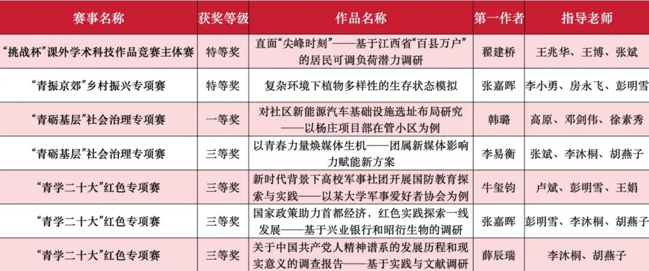 On October 30,2023, The 18th "Challenge Cup" National College Students Extracurricular Academic Science and Technology Works Competition has come to an end, Our student team composed of eight undergraduate students, including Zhai Jianqiao, Han Yitong and Guo Kaiyuan, Under the guidance of Professor Wang Zhaohua, Professor Wang Bo and Professor Zhang Bin, and with the help of our industry mentors, "Facing Peak Moment: How to Solve the Problem of Short-term Power shortage in China", won the 18th "Challenge Cup" National College Students Extracurricular Academic Science and Technology Works Competition philosophy and social science track special prize!