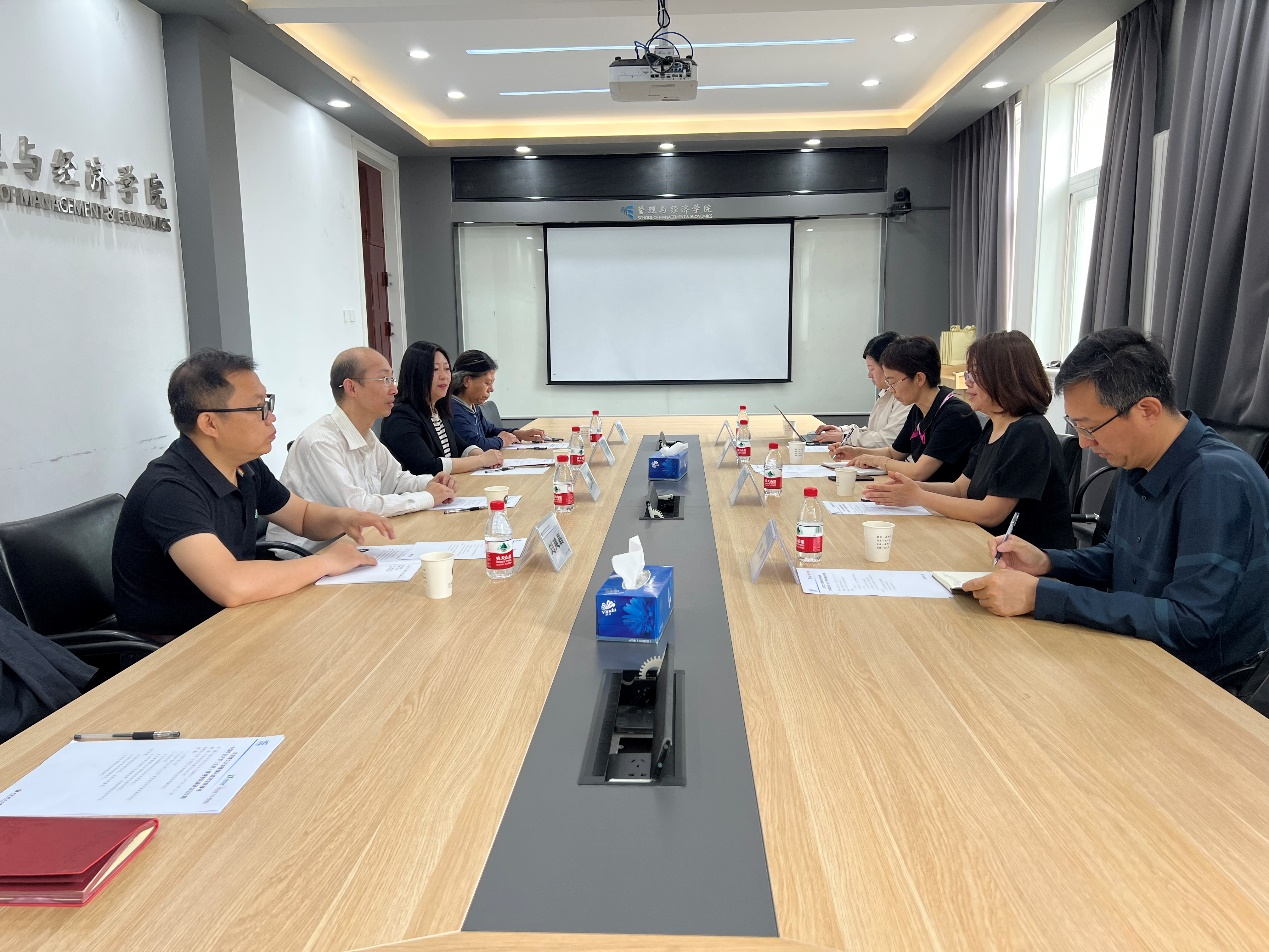 On May 12,2023, Shang Yu, Vice Dean of the School of Management, China University of Mining and Technology (Beijing), Song Mei, Secretary of the Department of Business Administration, Huang Hui, Dean of the Department of Management Science, and Yang Yang, Secretary of the Department of Management Science visited our school to conduct research and exchange on undergraduate education and teaching and talent training. Vice Dean Professor Zhang Xiang, Gao Huiying, Liu Jianchang, and Zhang Lihong received the delegation, and extended a warm welcome.