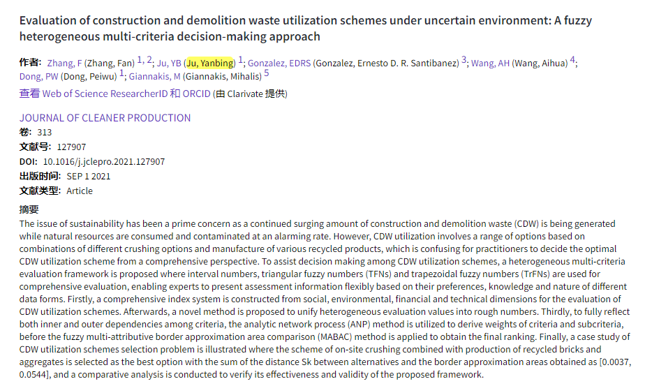 发表刊物:Journal of Cleaner Production