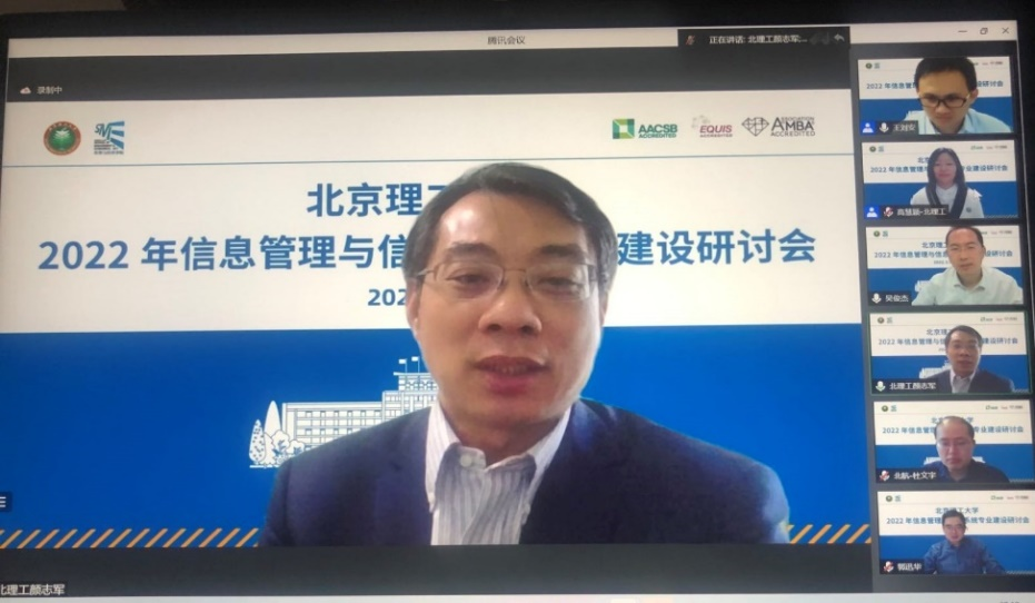 On the afternoon of May 11,2022, the Seminar on Information Management and Information System Professional Construction of Beijing Institute of Technology was successfully held.The seminar was hosted by the School of Management and Economics, Beijing Institute of Technology.Xiao Xuan, Vice Minister of Academic Affairs Department of the University, Professor Wang Zhaohua, Dean of the School of Management and Economics, Professor Yan Zhijun, Secretary of the Party Committee, Professor Zhang Xiang, Vice Dean, and Professor Chen Xiang, Vice Dean, attended the seminar. The seminar was held online in the form of Tencent conference. In addition to the teachers from the School of Management and Economics of Beijing Institute of Technology, more than 100 leaders and experts from Beijing University of Science and Technology , Beijing International Studies University, Beijing University of Posts and Telecommunications, University of International Business and Economics, Central University of Finance and Economics and other universities also actively participated in the seminar.