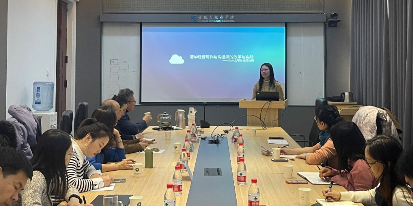 On November 26,2021, the Undergraduate Teaching Center of the School of Management and Economics organized an education and teaching activity, and invited Gao Jing from the School of Economics and Management of Tsinghua University to give a special lecture on "Ten Years of Reform and Practice of Tsinghua Economic and Management Writing and Communication Course". Vice Dean Professor Zhang Xiang and many backbone teachers of our school participated in the lecture.
