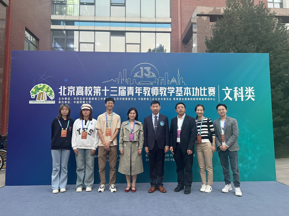 From October 23 to 29,2023, the 13th Beijing University Young Teachers Teaching Basic Skills Competition (liberal arts category) was successfully held in Beijing. After the selection of various universities and departments in Beijing, 145 teachers from 67 schools were finally promoted to the municipal competition. After fierce competition, Gao Ang of our school won the first prize of liberal arts category A group, the best display award and the most popular among students award. Professor Zhao Yutao, professor Zhao Erdong won the excellent instructor award.