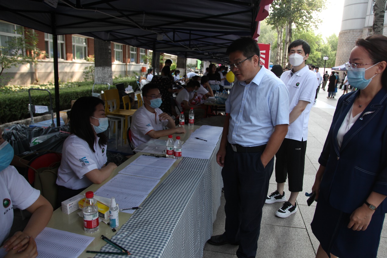 With the epidemic, prevention and control comes first. Leaders of the School and University pay close attention to the registration work, visit the site to understand the reporting process, and ask about the progress of the registration work. They guided the on-site work, and had cordial conversations and took photos with the teachers and students on site.