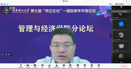 In response to the holding of the seventh "TELI Forum" of Beijing Institute of Technology, gather outstanding scientific research talents at home and abroad, and support the discipline construction and the development of the School, the sub-forum of the School of Management and Economics was held online on June 2nd. Dean Professor Wang Zhaohua, party secretary Yan Zhijun,vice dean professor Zhao Xian, assistant dean professor Zhang Jihai, associate professor Lv xin, and a number of teachers attended the forum. The forum is chaired by Associate Dean Professor Gao Ang.