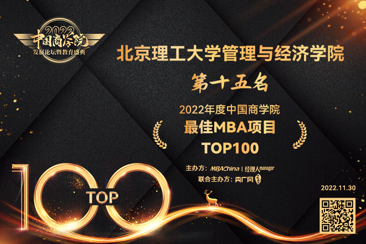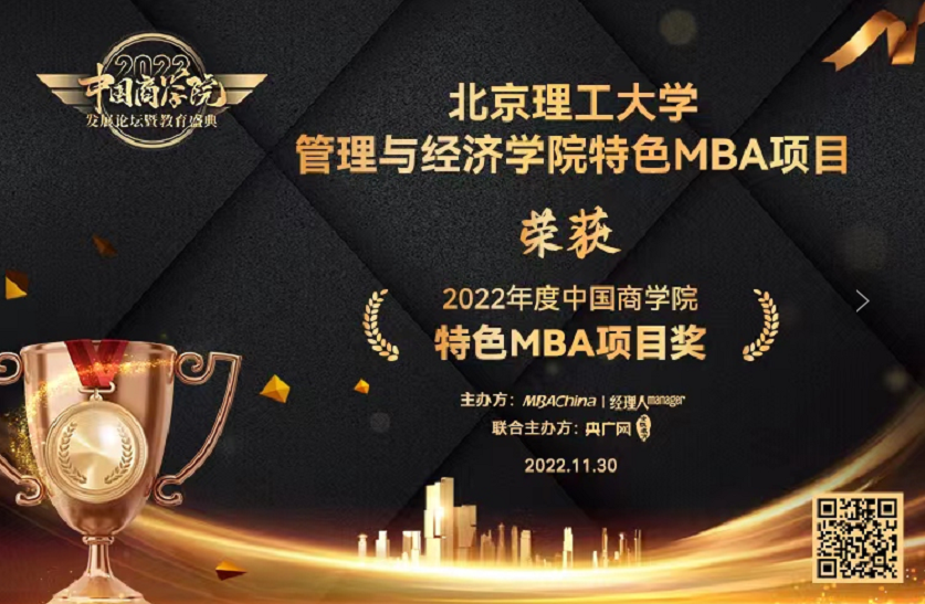 Beijing Institute of Technology School of Management and Economics MBA program, with excellent teaching quality, unique teaching concept, distinctive teaching characteristics and fruitful teaching results, won the "2022 China business school best MBA program" TOP15, and won the "Chinese business school characteristic MBA program award", the first echelon of China business school, ranked fourth in the Beijing area.