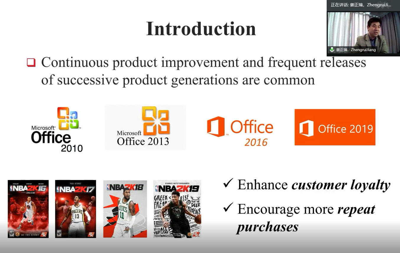 In the report, Professor Jiang Zhengrui first took the working software Microsoft Office and online game NBA 2K Online as an example to introduce the importance of software product update iteration and the selection strategy of new version release time, thus leading to the research content of this report.The study, starting from the actual change mode of online sports game products, predicts the timing of users using an updated version by constructing an exponential attenuation proportional risk model (Expo-Decay model).To study table names, the Expo-Decay model presented herein is better predictive compared to traditional models such as Erlang-2, Weibull.In addition, the research results also give management implications for product update decision-making and customer behavior prediction.The report aroused great interest from teachers and students, and launched a heated discussion and exchange, with a warm response, which was well received by the majority of teachers and students!