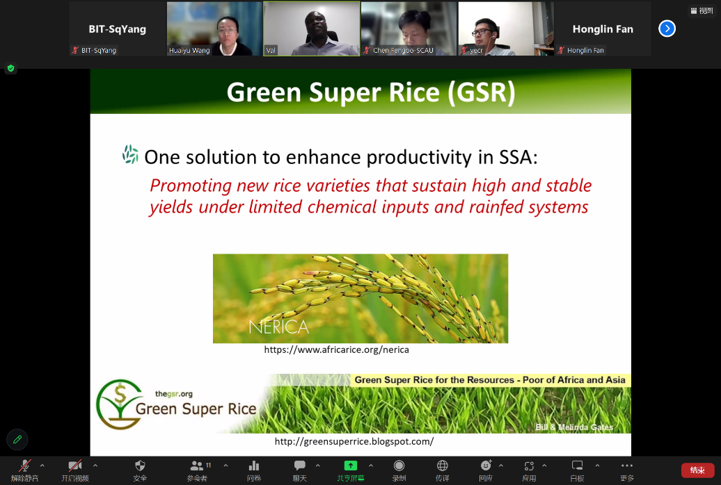 Dr. Pede conducted an academic sharing on "Assessing the benefits of Green Super Rice in Sub Sahara Africa: Evidence from Mozambique" on the promotion of green super rice varieties in Africa. The Green Super Rice Project was officially launched in 2008 and is the largest international agricultural technology poverty alleviation project led by Chinese scientific research institutions and scientists since the establishment of the People's Republic of China. The project has approved 78 varieties in 18 target countries in Asia and Africa. Dr. Pede's research focuses on the adoption of the green super rice variety in Africa, using Mozambique farmer survey data to evaluate the yield and cost-effectiveness benefits of adopting the green super rice variety for African small-scale rice producers. The research results show that adopting green super rice varieties can significantly improve the rice yield and cost efficiency of African farmers who adopt them. Rice varieties represented by green super rice can bring positive changes to the development of rice production in Mozambique.
