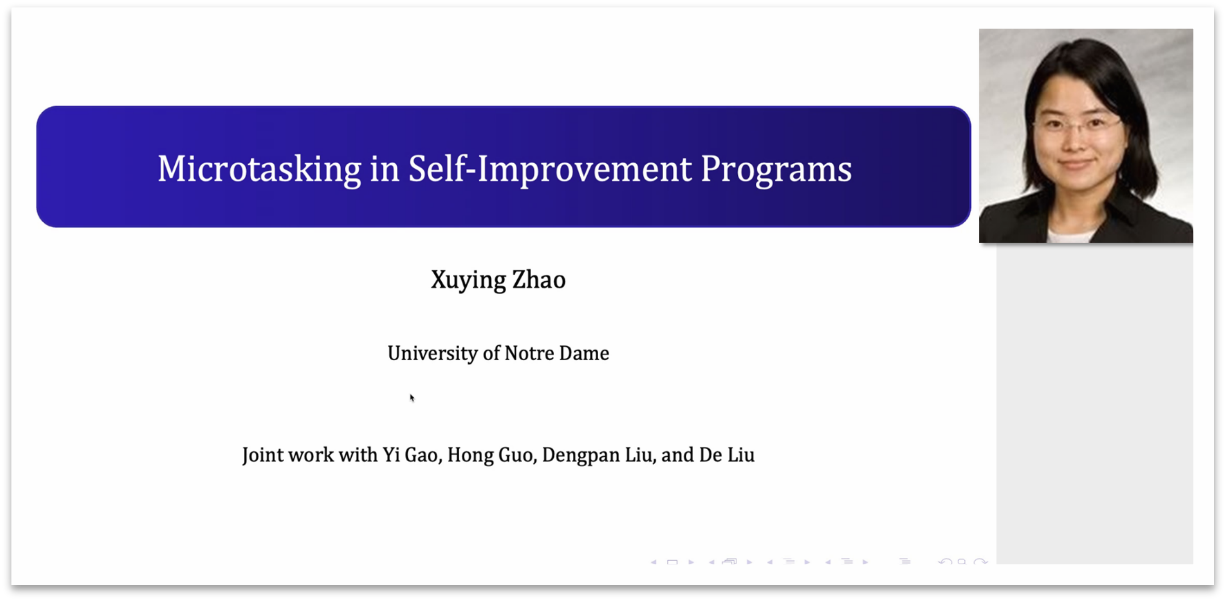 On May 27th, [Mingli Lecture Hall 2022 Issue 30] was honored to invite Xuying Zhao from the University of Notre Dame to bring you an academic report entitled "Microtasking Design in Self-Improvement Apps: Theoretical Lens from Present Bias".
