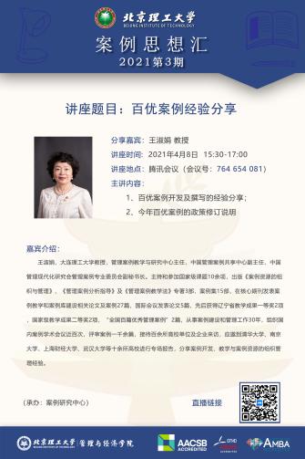 On the afternoon of April 8,2021, Professor Wang Shujuan, professor of Dalian University of Technology and deputy director of China Management Case Sharing Center, shared the experience in case development and writing with teachers and students through Tencent Conference, and introduced the policy revision of 100 excellent cases in detail.