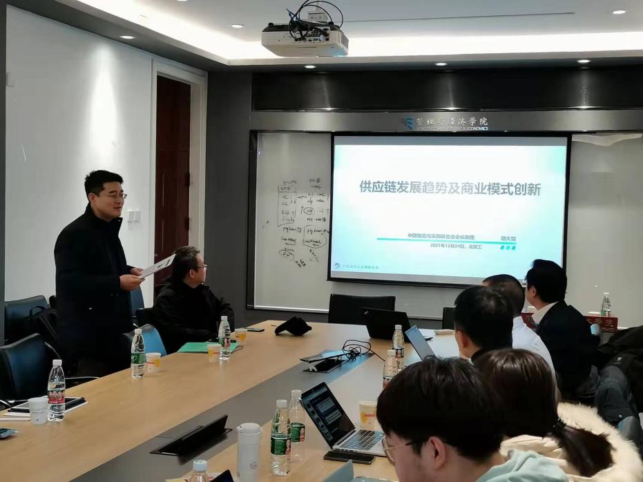 On December 24, 2021, we were honored to invite Hu Dajian, a researcher from China Federation of Logistics and Purchasing, to deliver a report entitled "Development Trend of Supply chain in the post-epidemic era". The report was held in the 216 Conference room of the main building. More than 10 teachers and students from the Department of Management Engineering and graduate students attended the lecture. The moderator was Associate Professor Zhang Yuli from the Department of Management Engineering of the School of Management and Economics.