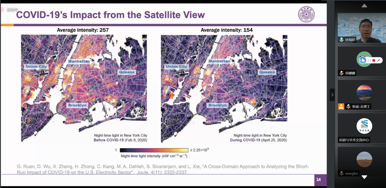 In the report, Professor Zhong Haiwang first introduced his research team and research direction, and then specifically introduced the latest article published in the Joule journal, "A Cross-Domain Approach to Analyzing the Short-Run Impact of COVID-19 on the US Electricity Sector", analyzed the short-term impact of the epidemic on the US power sector, and shared the team's work on the database construction of the epidemic and energy.