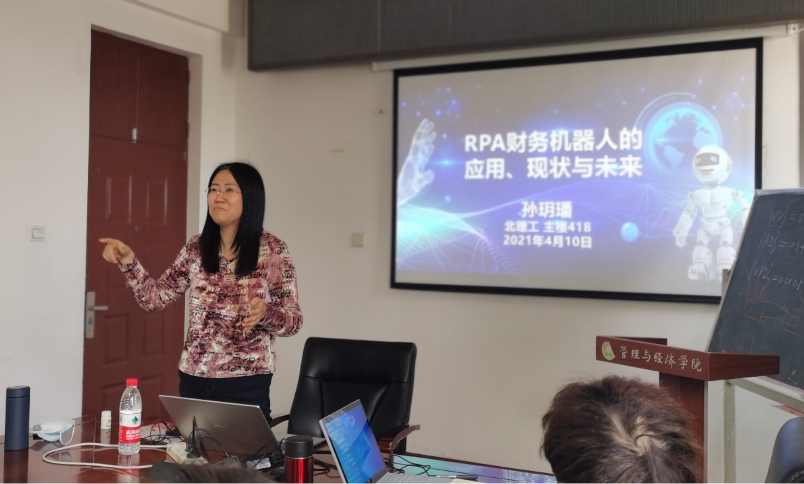 On April 10th, [Mingli Lecture Hall, 2021 20th Issue] was fortunate to invite Associate Professor Sun Yuefan from Beijing Technology and Business University to bring an academic report entitled "The Application, Status and Future of RPA Financial Robots". The report was held at Main Building 418. Many teachers and students from the School of Management and Economics participated in this lecture, and the host was Professor Songsheng Chen, the dean of the Accounting Department of the School of Management and Economics.