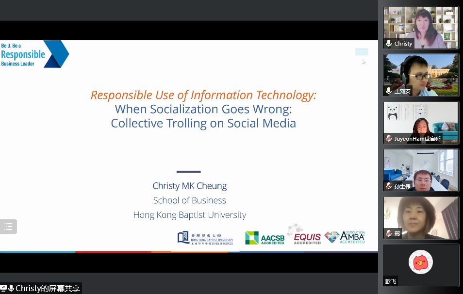 On December 21, No. 69 of 2021, Professor Christy M.K. Cheung of Hong Kong Baptist University brought the title "When Socialization Goes Wrong: Collective Trolling on Social Media ". Professor Yan Zhijun of School of Management and Economics of Beijing Institute of Technology introduced Christy and presided over the report.