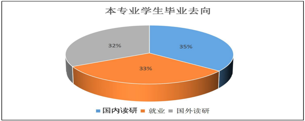 · Further study at home and abroad.After graduation, about 70% of the students in this program choose to continue their studies, and most of them choose to study in the top 100 QS universities in the United States, the United Kingdom, Germany, France, Japan, Australia and other countries and regions.