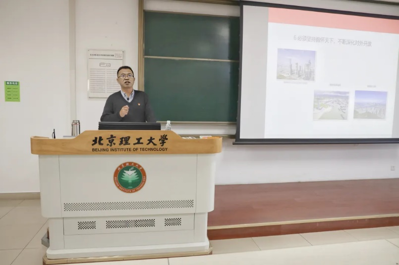 张雷以习近平总书记在党的二十大做的开幕报告作为切入点,带领同学们一起回顾了中国共产党在过去五年取得的成就和未来党的使命任务,解读了五位一体的总体布局,明确中国式现代化发展的要求。随后,张雷又进一步提出了中国式现代化面临的问题,对于我们而言需要做到“六个必须坚持”,即必须坚持人民至上,扎实推动共同富裕;必须坚持自信自立,走自己的发展道路;必须坚持守正创新,发挥制度和治理优势;必须坚持问题导向,聚焦深层次难题;必须坚持系统观念,全面系统推进改革发展;必须坚持胸怀天下,不断深化对外开放。最后,张雷强调作为肩负强国使命的新时代青年,我们尤其要认真学习习近平新时代中国特色社会主义思想,把握贯穿其中的立场观点方法,用习近平新时代中国特色社会主义思想认识世界、改造世界。