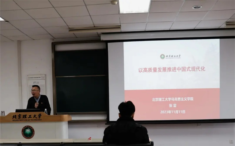 2023年11月11日上午,管理与经济学院2023-2024学年第二讲党课顺利举行。本次党课的主讲人是我校马克思主义学院副教授、硕士生导师张雷。他为入党积极分子带来题为《以高质量发展推进中国式现代化》的专题党课,让同学们对于中国式现代化的内涵与本质要求有了更为深刻的认识。
