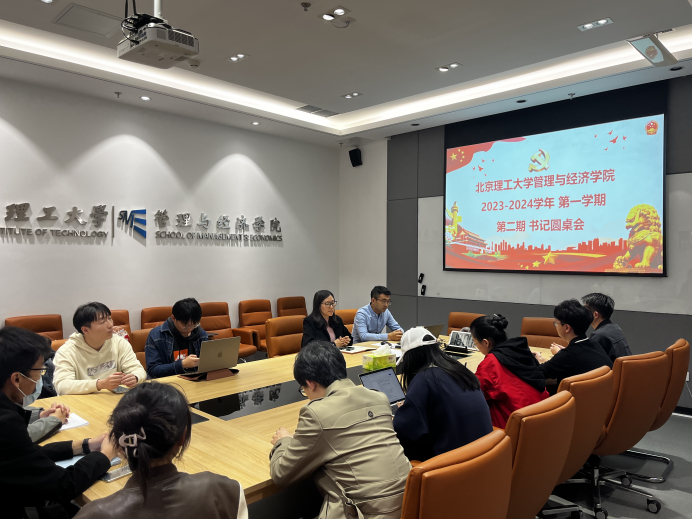 为学习贯彻习近平新时代中国特色社会主义思想主题教育,认真落实从严治党,扎实做好发展党员工作,严格把关党员发展流程,提升学生党支部支委业务水平,2023年11月2日,管理与经济学院召开“2023-2024学年第一学期 书记圆桌会议(第二期)”。学校党委组织部陈皓禹、学院学生党建组织员赵强和学院研究生学生党支部骨干20余人参加了此次会议。