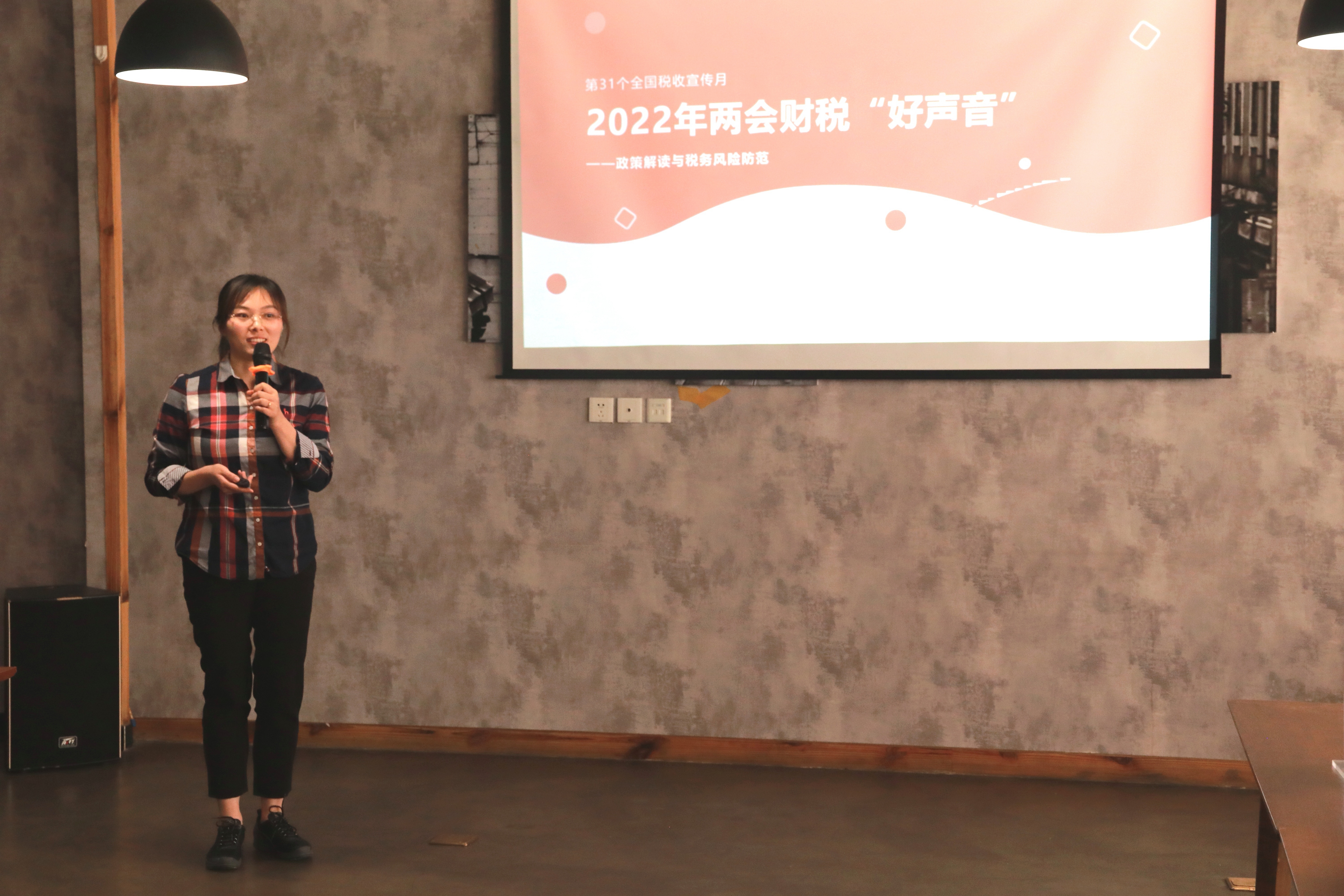 韩倩妮结合2022两会对财税政策和税务风险防范为大家做了细致的解读。她谈到,实施减税降费是2022年党中央、国务院帮扶企业发展最公平、最直接、最有效率的宏观政策。她围绕“减税降费力度不减稳预期”、“留抵退税直达企业焕生机”、“激励创新培育壮大新动能”、“稳岗就业养育减负惠民生”四个主题展开解读。此外,她还对企业适用优惠政策税务风险点进行风险提示,同时结合自身工作经验向大家提出了行之有效的建议。