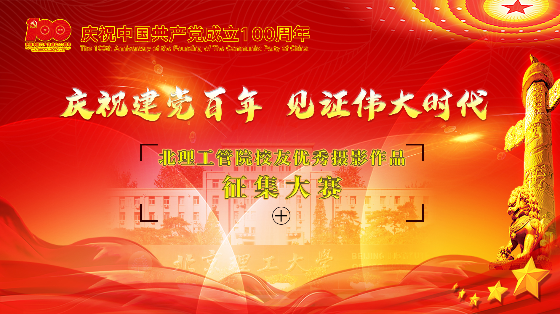 百年征程波澜壮阔,百年奋斗铸就辉煌。为庆祝中国共产党成立100周年,用摄影特有的艺术形式和视角,展现以党中央坚强领导下伟大祖国发生的历史性变革和取得的历史性成就 ,展现管院广大师生、校友立足岗位、建功立业的靓丽风采。由管理与经济学院主办,学院校友工作办公室、学院工会承办,学院MBA联合会、500px共同协办的“庆祝建党百年,见证伟大时代”北理工管院优秀摄影作品征集大赛成功举办。