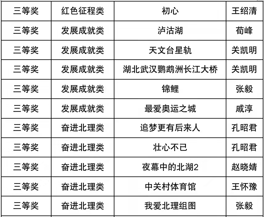 本次大赛分为“红色征程”、“发展成就”、“奋进北理”三类主题,征集作品包括展示革命旧址、革命纪念馆、革命老区的新时代风貌,抗击疫情的感人瞬间,科技报国的奋斗时刻;聚焦国家壮美山河、社会建设发展、重大科技成果、特色风土人情、历史人文景观和人民美好生活;聚焦学校精神文化景观、优美校园环境、重点科研平台、重要楼宇建筑和师生工作学习中的精彩瞬间。