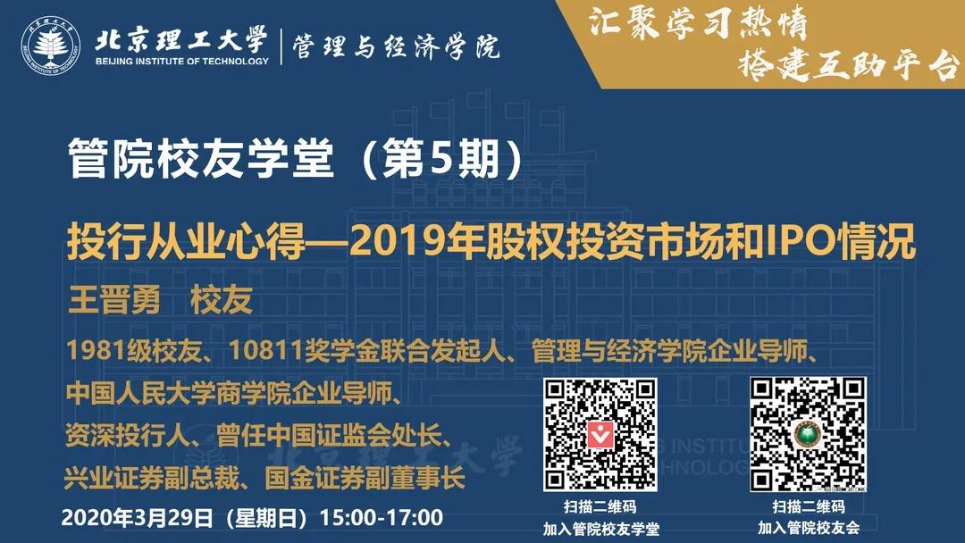 【活动】管院校友学堂第5期| 投行从业心得—2019年股权投资市场和IPO情况