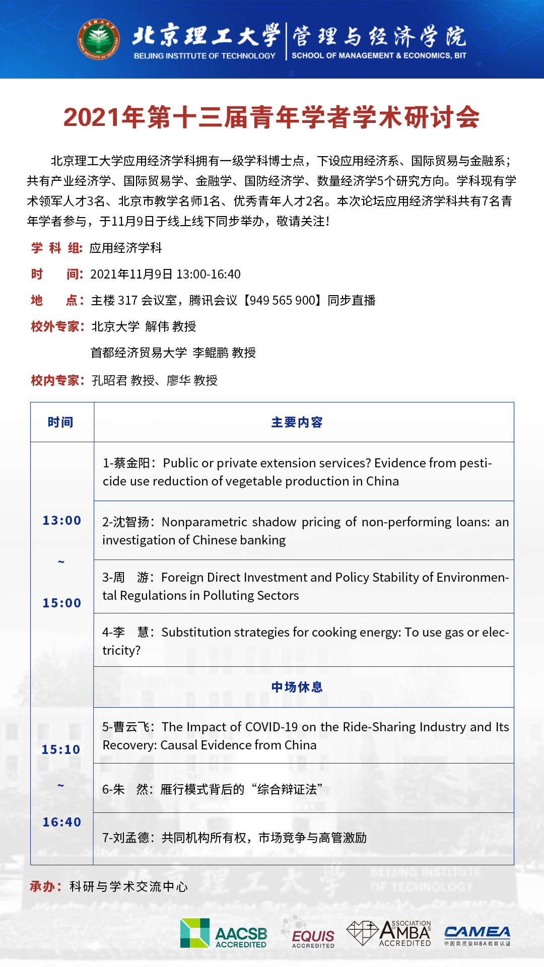 时间:11月9日(星期二) 13:00-16:40