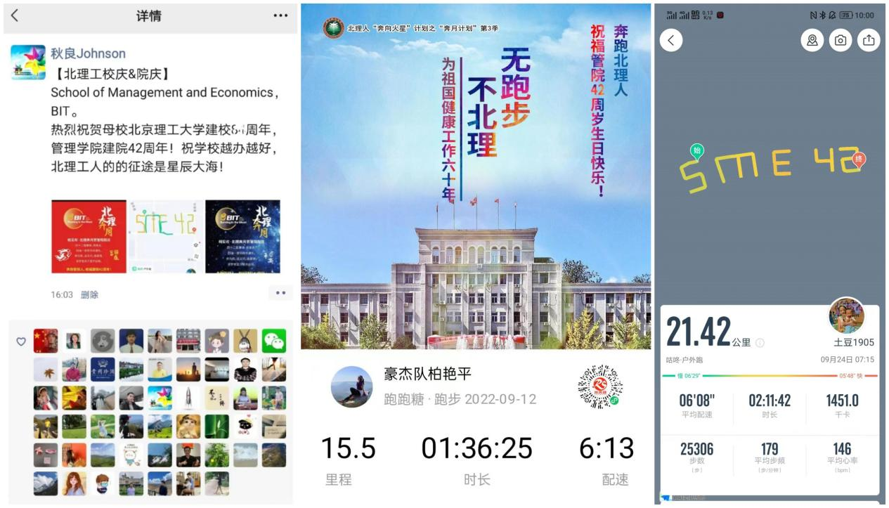 “奔跑管院人,为学院庆生”主题云跑活动,自启动以来得到了广大校友的积极关注与参与。400余位校友在全球各地跑出的“SME42”字样,象征着学院走过的42年光辉历程。每一个字母,每一个数字,每一条轨迹都是对学院的美好祝福,展示了奋进新时代、建功新征程的昂扬风貌。