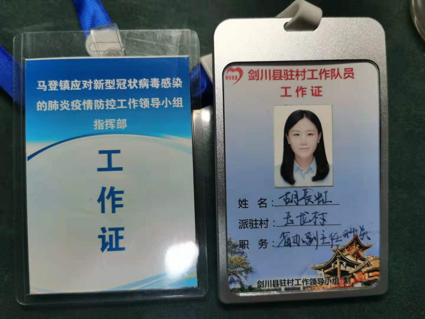 2020年初新冠疫情发生后,胡长虹和队长以及其他两位队员及时返回岗位,防疫、扶贫两手抓,在路口设卡排查外地人员和车辆,并进行登记和消毒。同时,通过电话统计各家各户因疫情受影响情况,在疫情缓解后,及时推送就业务工信息,鼓励适龄人员外出务工,减轻疫情对建档立卡家庭收入的冲击。2020年7月她兼任剑川县马登镇副镇长,并参与了全国脱贫攻坚普查工作,作为普查员前往大理州云龙县开展普查,在20天内前往了3个乡镇14个行政村,圆满完成211户农户的普查任务。