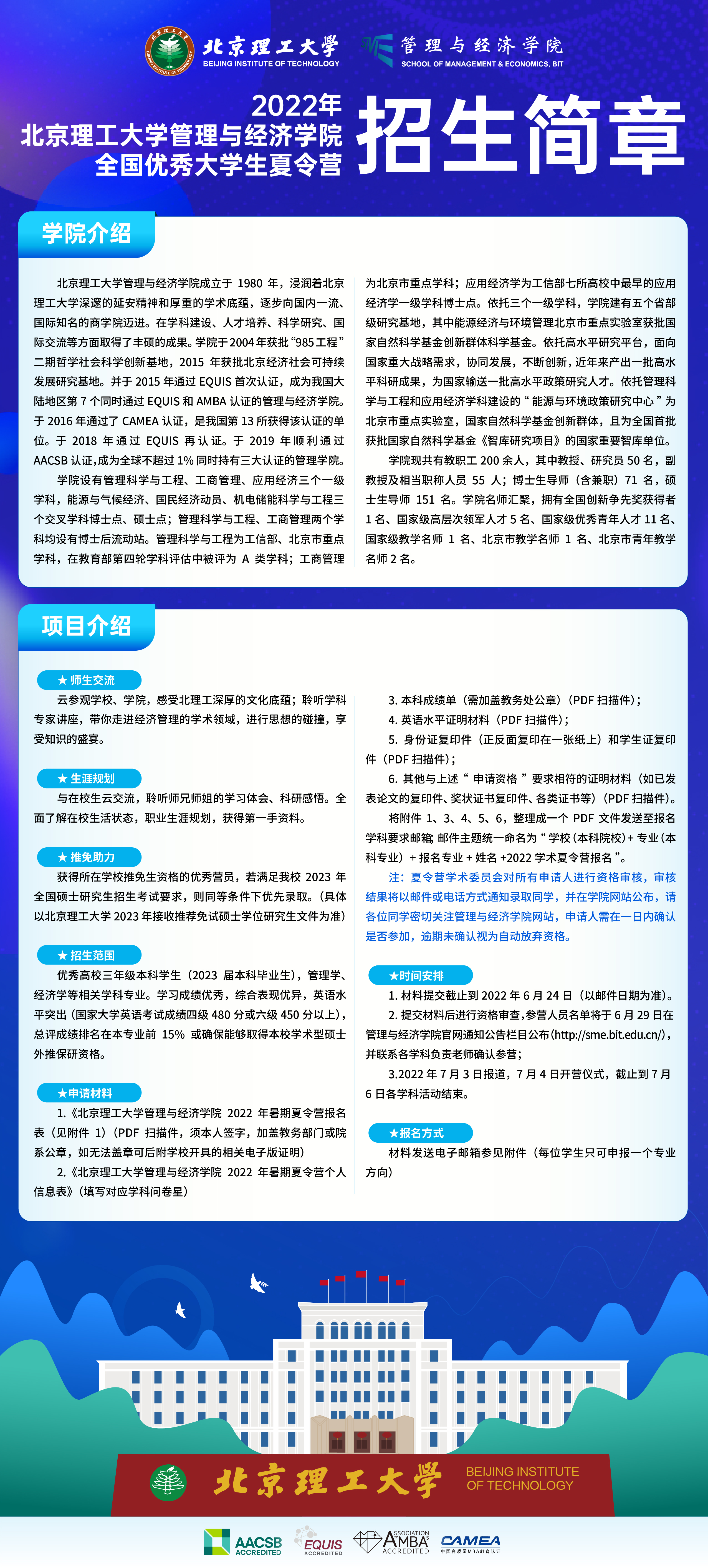 2022年bw必威西汉姆联官方网站管理与经济学院全国优秀大学生夏令营招生简章
