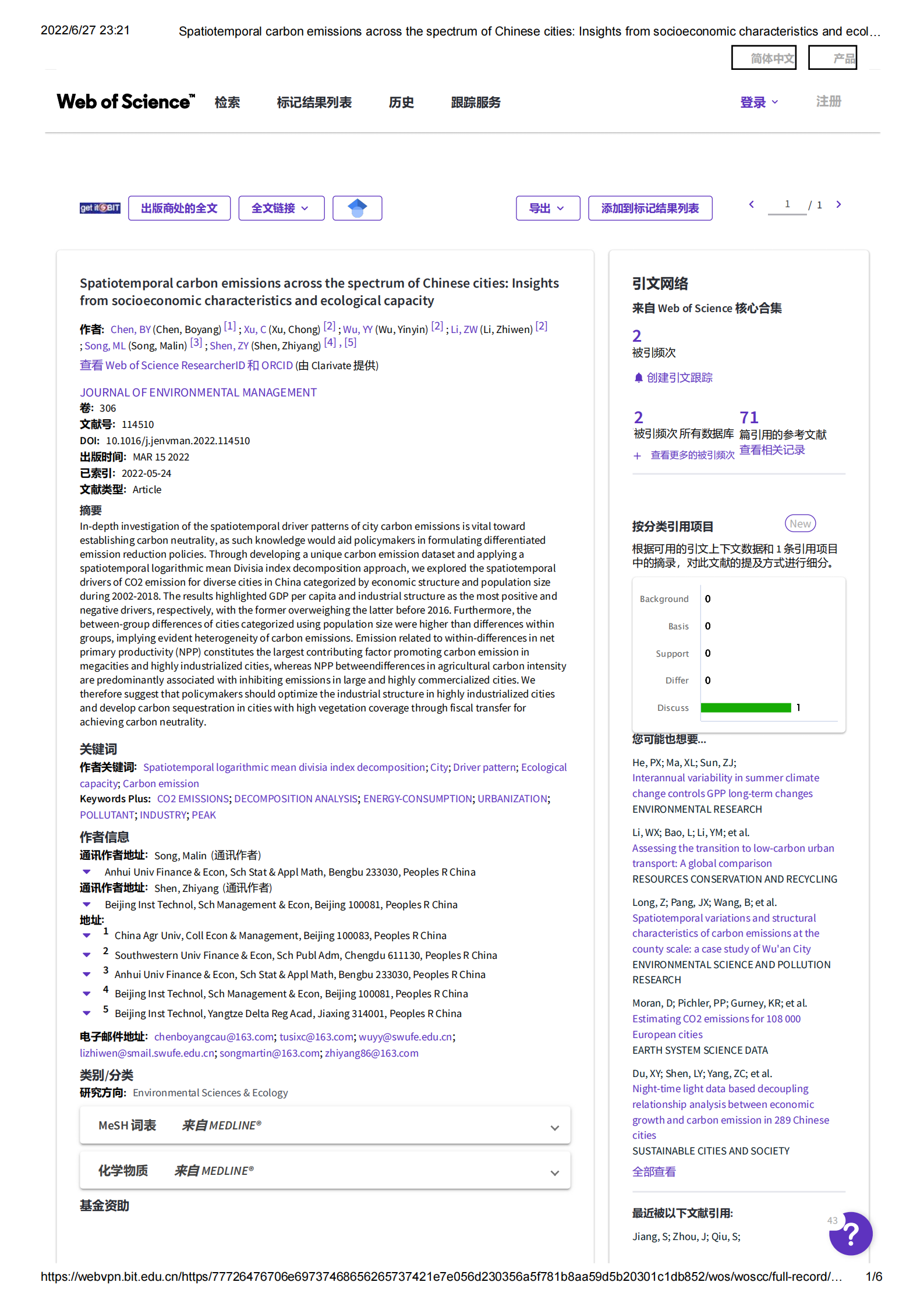 发表刊物:Journal of Environmental Management