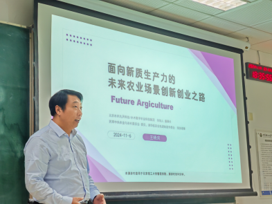 受betway西汉姆联官网公共管理系主任、博士生导师尹西明老师邀请,北京水木九天创始人、董事长, 民革中央农业农村委员会委员王晓庆应邀于2024年11月06日晚上6:30-8:00在我校中关村校区研究生楼304教室为北理工betway西汉姆联官网师生作题为“面向新质生产力的未来农业场景创新创业”主题报告。该讲座为《数字经济概论》《创新与变革管理》《创新创业研究与实践》系列课程的实践前沿专题分享系列,得到bw必威西汉姆联官方网站 “明理讲堂”系列公益讲座、国家自然科学基金面上项目“科技成果转化赋能新质生产力发展:理论基础、组织模式与制度环境”支持。我校betway西汉姆联官网本科、学硕和EMBA/MBA等90余人到达现场参加。