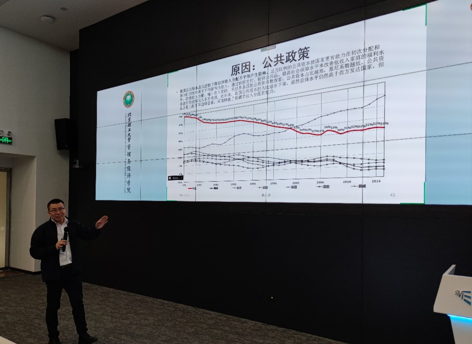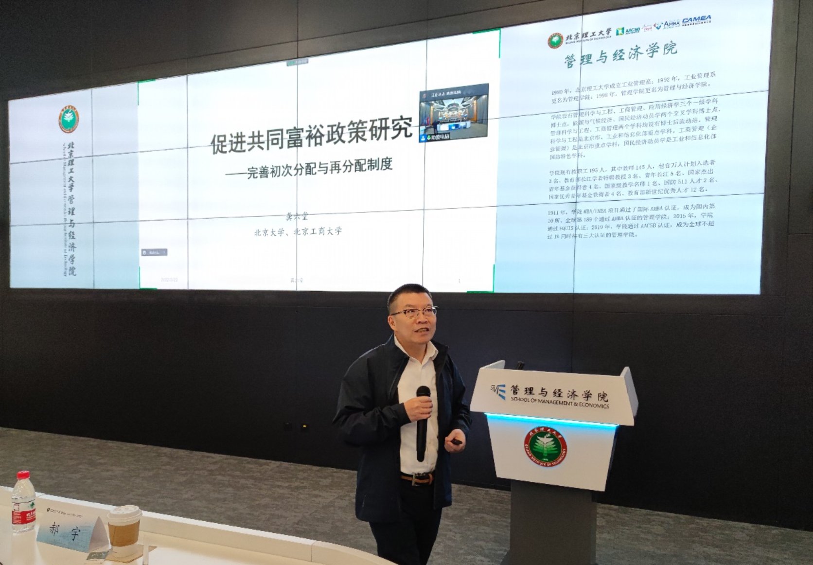 应管理与经济学院的邀请,北京工商大学副校长龚六堂教授来我院进行交流访问,并于2022年3月23日下午3点在主楼240会议室作了题为大家带来题为“促进共同富裕的政策研究——初次分配与再分配政策”的学术报告。本次报告由郝宇教授主持,众多师生参加了此次报告会。