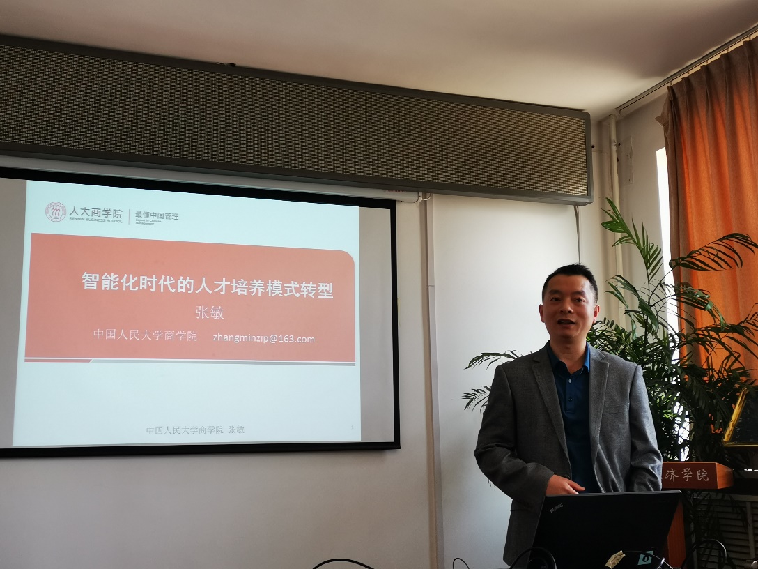 4月7日, 【明理讲堂2021年第15期】有幸邀请到中国人民大学张敏教授带来题为“智能化时代的人才培养模式转型”的学术报告,报告在主楼418举行。管理与经济学院肖淑芳、李慧云、佟岩等多名师生参加了本次讲座,主持人为管理与经济学院会计系主任陈宋生教授。