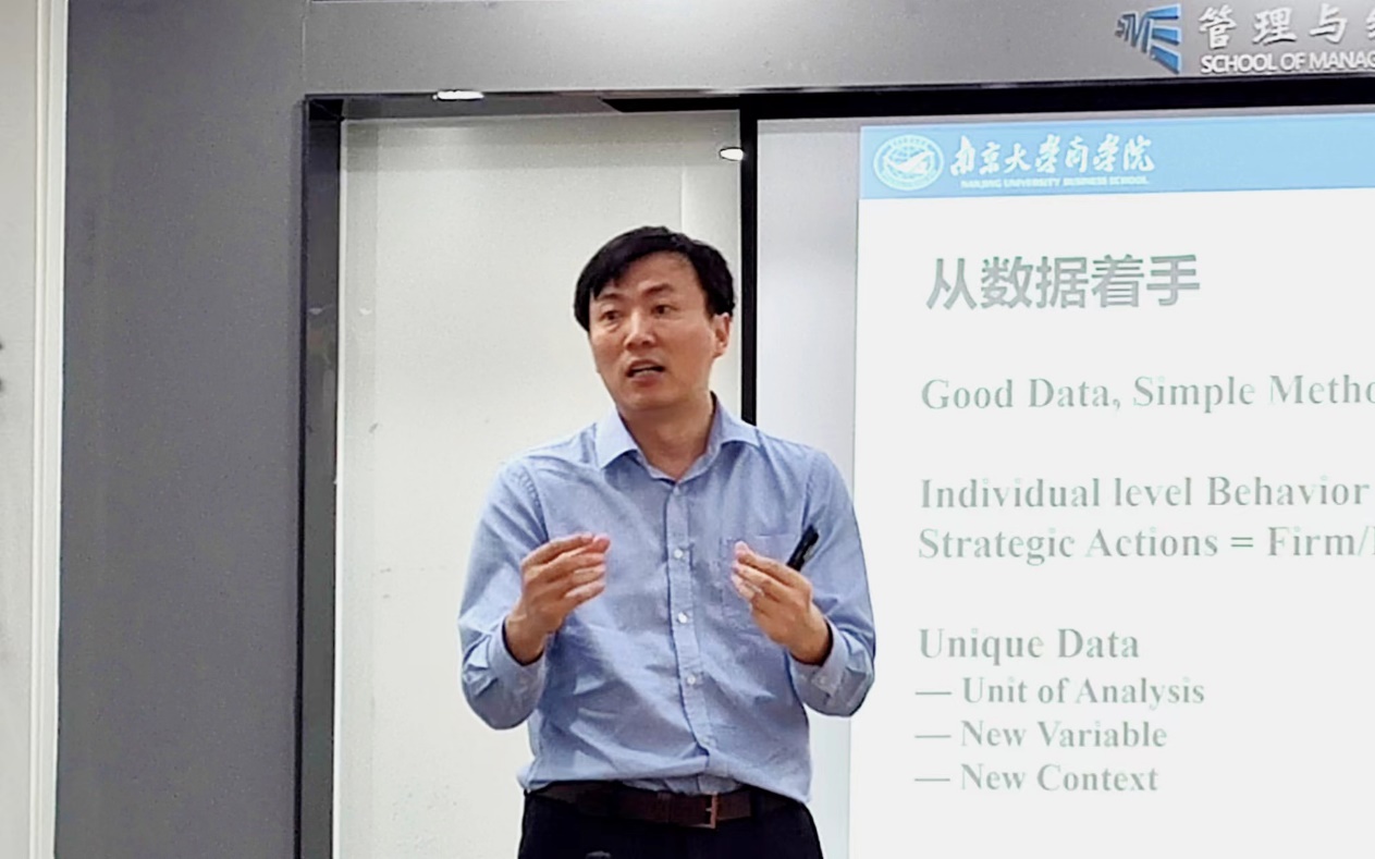 应管理与经济学院的邀请,南京大学商学院宋培建教授于2023年5月19日下午4点在主楼216会议室做了题为《数据驱动的管理学实证研究: 以两篇论文为例》的学术报告。报告会由厉洋军老师主持,学院众多师生参加了本次报告会。