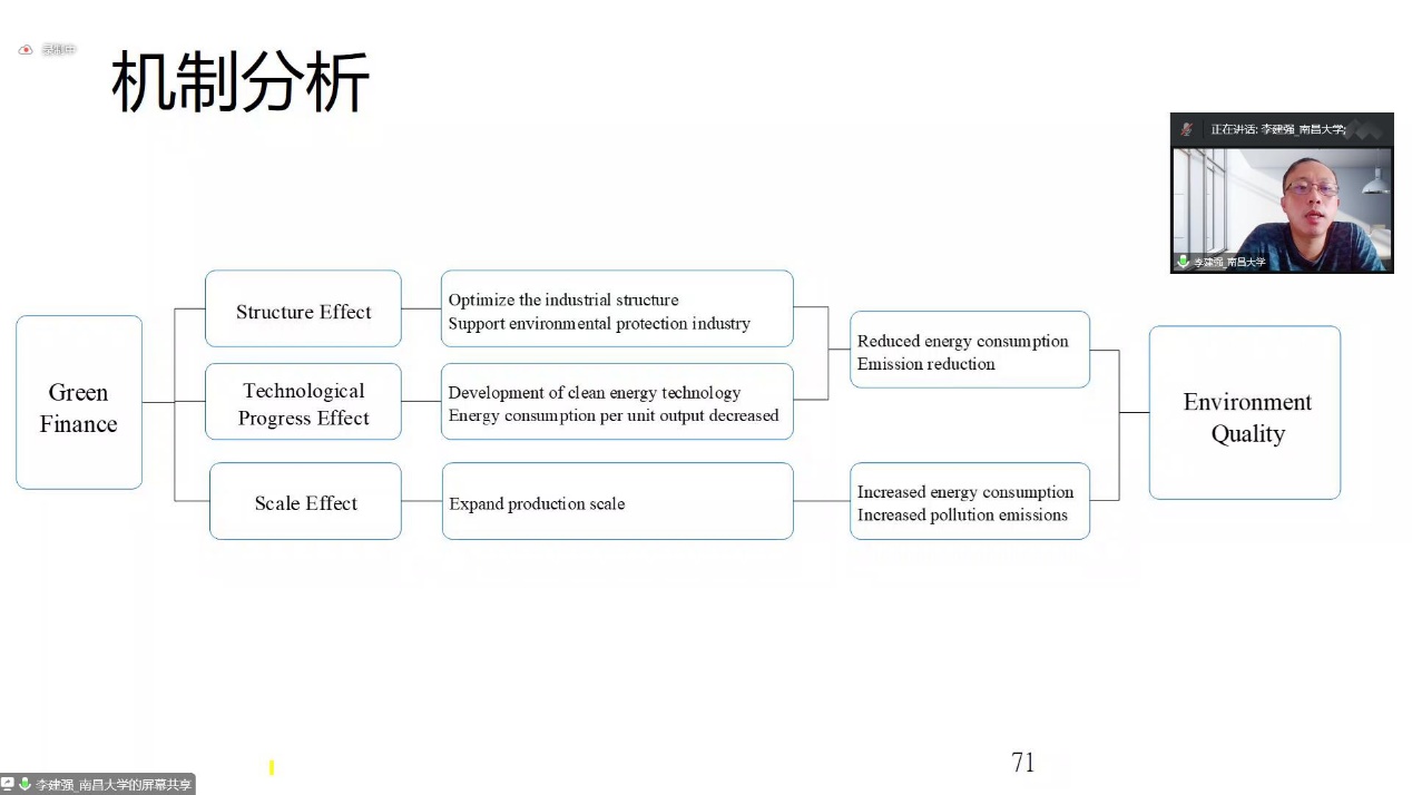 应管理与经济学院的邀请,南昌大学经济betway西汉姆联官网李建强教授于2022年10月4日上午十点通过线上会议方式作题为《Howdoesgreenfinanceaffectgreentotalfactorproductivity? Evidence fromChina》的学术报告。报告会由郝宇老师主持,共有130多位师生参与了报告。