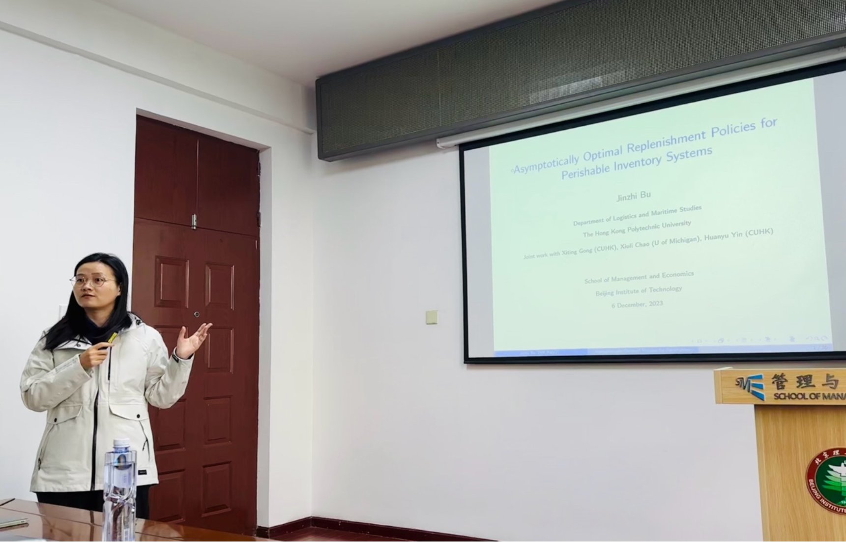 2023年12月7日下午,香港理工大学物流与航运系卜金枝助理教授应邀,进行了题为“Asymptotically Optimal Replenishment policies for Perishable Inventory Systems”的学术报告,吸引了学院师生积极参与。