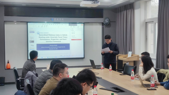2024年11月25日,同济大学副教授张真真应邀进行了题为“Generalized Riskiness Index in Vehicle Routing under Uncertain Travel Times: Formulations, Properties, and Exact Solution Framework”的学术报告。报告在主楼216会议室举行,来自管理工程系的多名教师、研究生以及外校80多名师生通过线上线下相结合的形式参加了本次讲座,管理工程系张玉利教授主持本次交流活动。