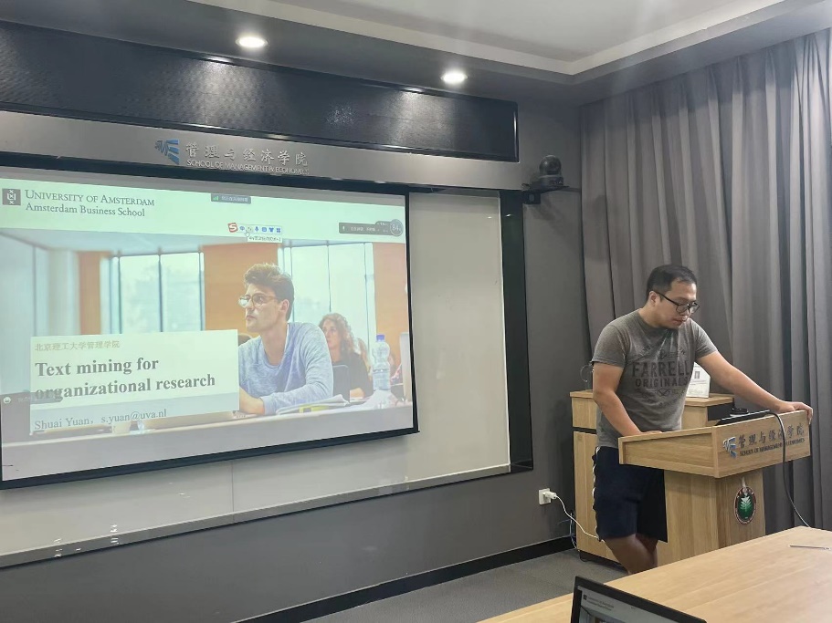 2023年6月2日下午,荷兰阿姆斯特丹大学袁帅助理教授应邀到我院做题为《人力资源和组织管理领域中的文本分析》的学术报告,报告由我院组织与人力资源管理系邓英欣助理教授主持,学院众多师生以线上和线下相结合的方式参加了本次报告会。