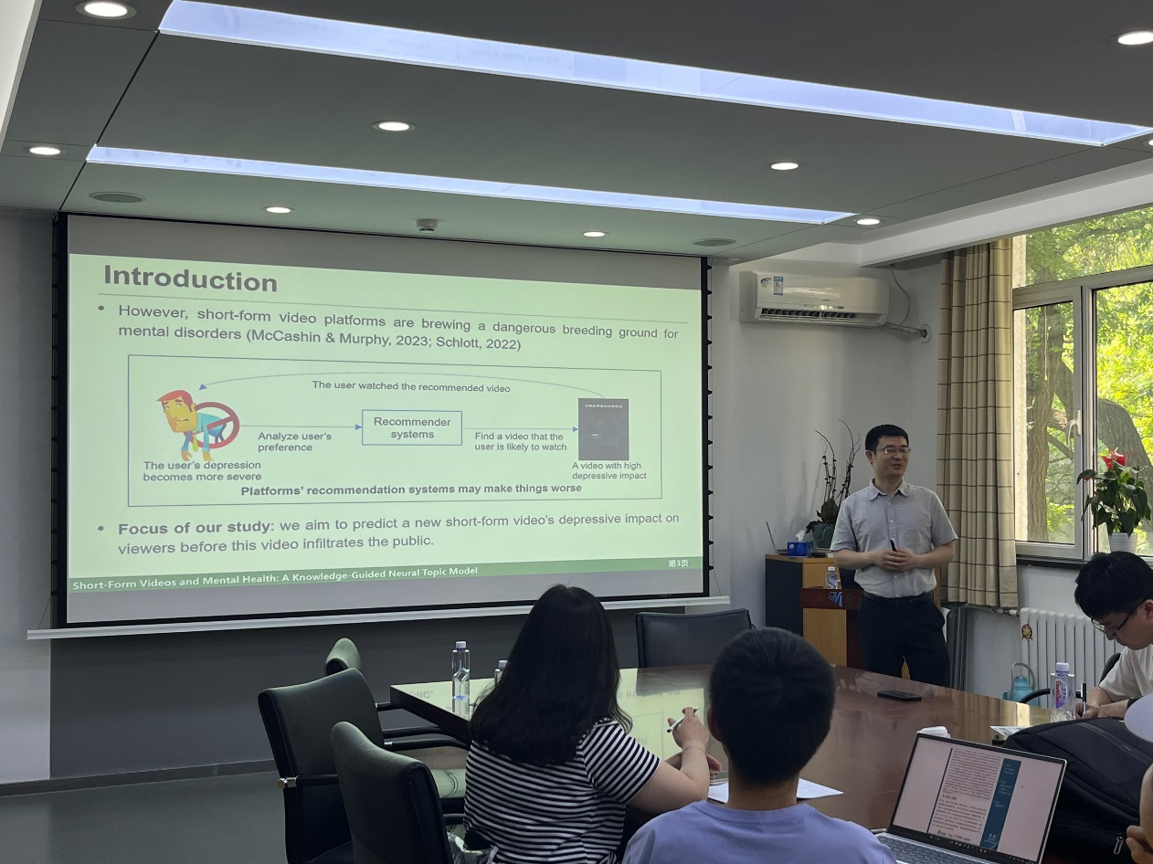 应betway西汉姆联官网的邀请,合肥工业大学柴一栋教授于2024年6月17日下午在中关村校区主楼317会议室作了题为《Short-Form Videos and Mental Health: A Knowledge-GuidedNeural Topic Model》的学术报告。报告会由崔少泽老师主持,学院众多师生参加了本次报告会。
