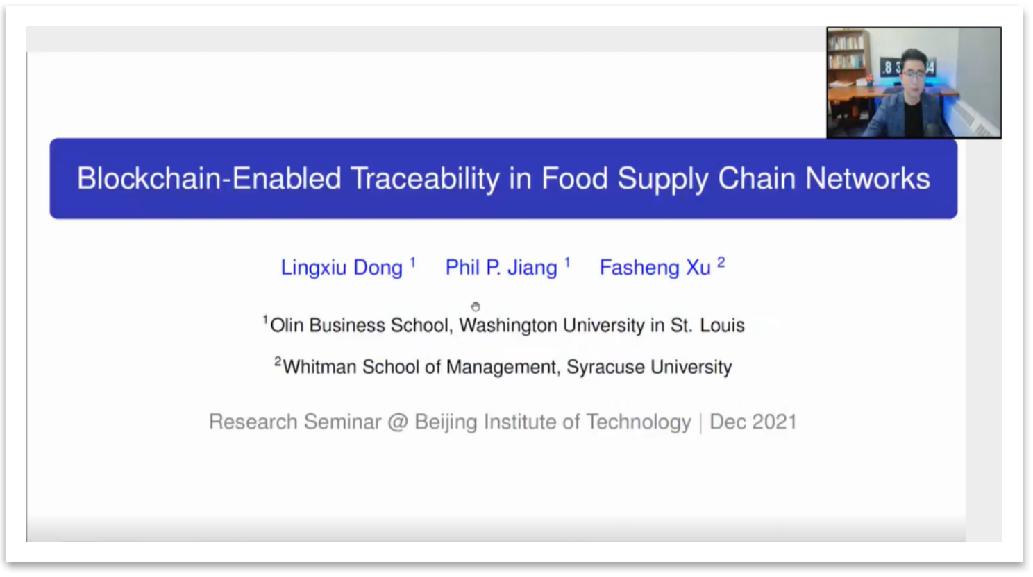12月10日,【明理讲堂2021年第65期】有幸邀请到美国雪城大学惠特曼betway西汉姆联官网许发胜助理教授为大家带来题为“Blockchain-Enabled Traceability in Food Supply Chain Networks”的学术报告。bw必威西汉姆联官方网站管理与经济学院李果教授向大家介绍了许发胜老师并主持报告。