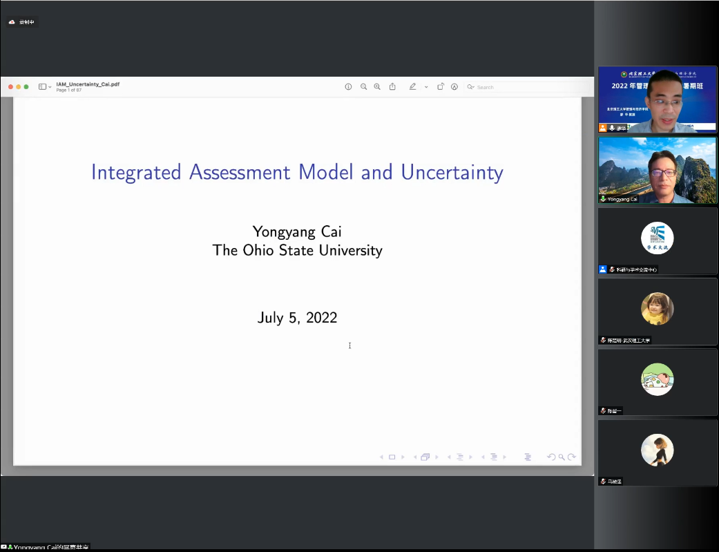 2022年7月5日上午,俄亥俄州立大学蔡拥阳教授受邀在学院暑期课程班上做了“Integrated Assessment Models and Uncertainty”的学术讲座。270余名师生参加了讲座。