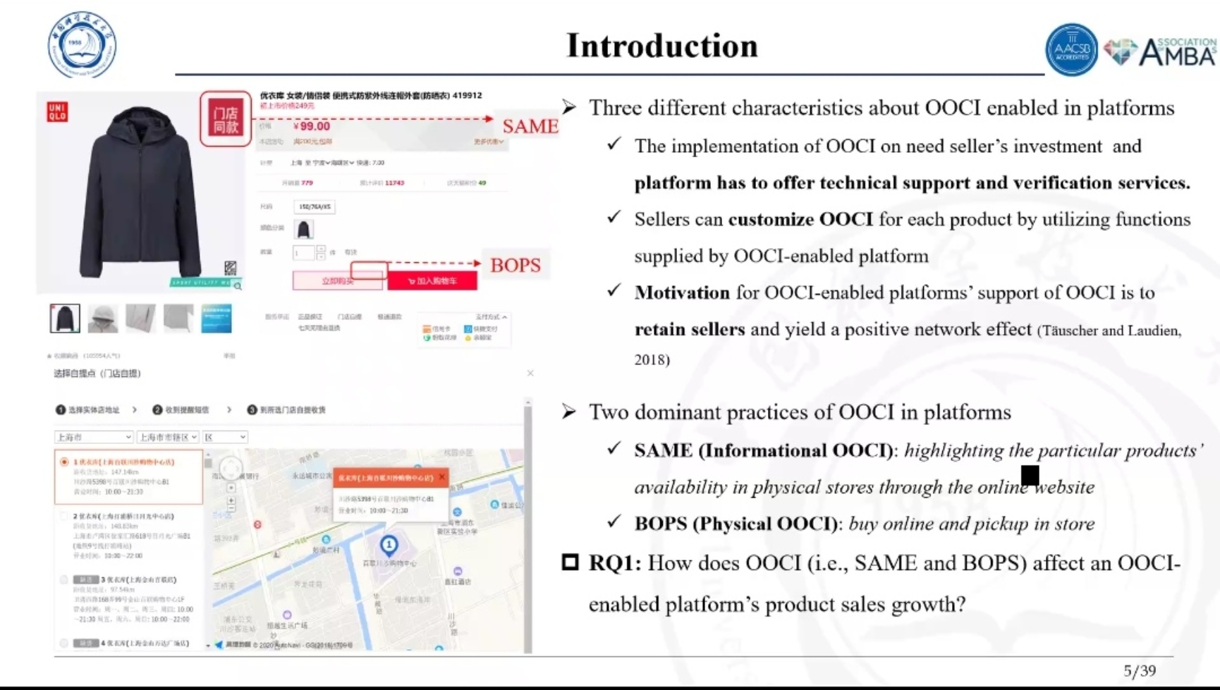 刘教授以《How Can Platform Compete in Omni-channel Retailing?Considering the Role of Inter-Platform Function Usage Difference》为题作了报告。报告内容主要从跨渠道营销入手,对线上到线下渠道整合(OOCI)的影响效应进行了分析。虽然OOCI能够提高客户到实体店消费的意愿,但这使得电商平台不仅面临着来自于其他平台的竞争,还面临着零售商实体店的竞争。刘教授在会上详细介绍了该项研究工作的背景、相关文献和数据来源。研究分析了248家在线零售商的数据,使用了倾向得分匹配和多级线性模型,剖析了零售商差异化功能使用策略在多个平台中的重要作用。