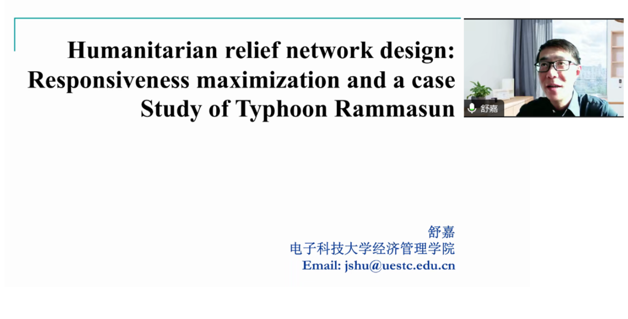 12月6日,【明理讲堂2023年第93期】有幸邀请到电子科技大学经济与betway西汉姆联官网舒嘉教授为大家带来题为“Responsiveness Maximization Humanitarian Relief Network Design”的学术报告。