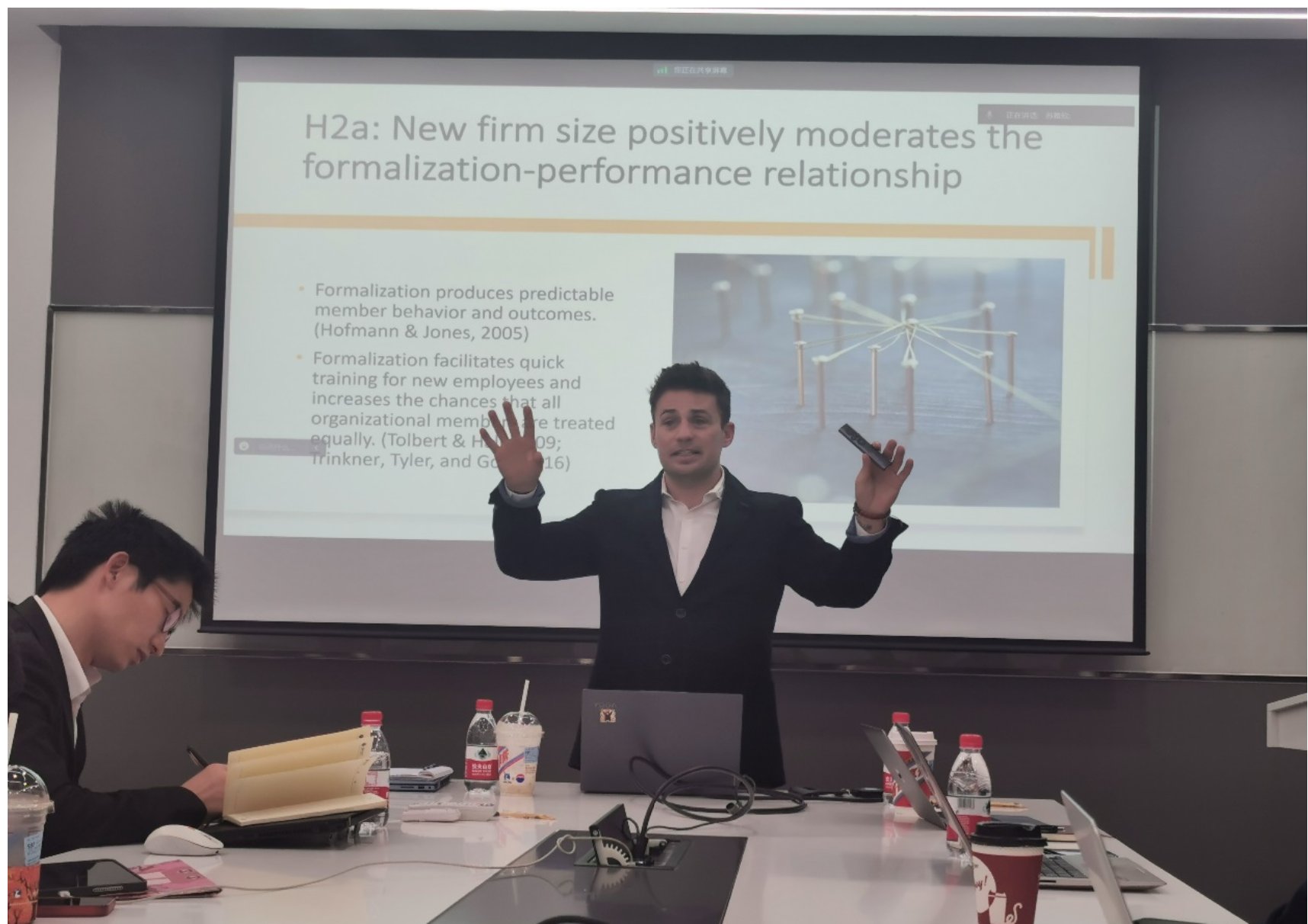 2024年1月12日下午,美国康涅狄格大学 (UConn)商学院管理与创业系助理教授Ryan Coles应邀请进行了题为“Size Matters: The Moderating Impact of FirmSize on Formalization and Performance forNew Firms”的学术报告,吸引了学院50余名师生积极参与。