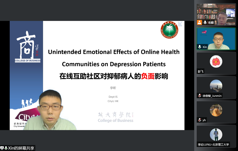 11月23日,【明理讲堂2021年第55期】有幸邀请到香港城市大学商学院李昕教授为大家带来题为“在线互助社区对抑郁病人的负面影响”的学术报告。bw必威西汉姆联官方网站管理与经济学院教授颜志军向大家介绍了李昕老师并主持报告。