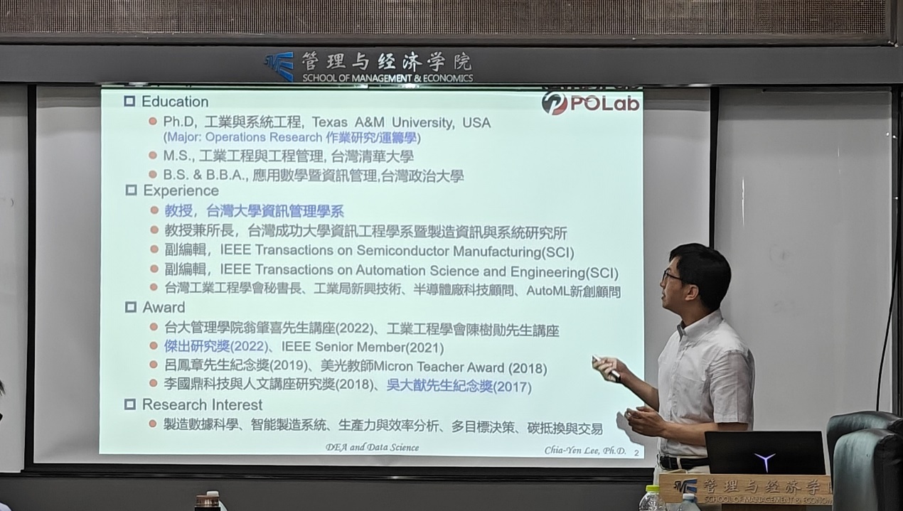 2023年8月16日,台湾大学李家岩教授应邀来访并做题为“Data Science and Data Envelopment Analysis”的学术报告。本次报告由中心和学院王科教授主持,韩特老师、皮振洋博士等中心和学院师生参加了此次报告。