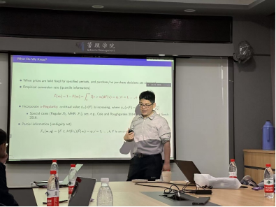何斯迈教授介绍了针对数据或信息量特别稀少的决策场景,如何基于有限的数据,通过整合领域知识降低决策的保守程度,构建出高效且低风险的管理决策模型。对数凹、单调风险率等随机分布的结构特征在经济管理领域中被普遍采纳,也包括绝大多数常见拟合参数分布。相关研究表明,引入分布结构特征可极大提升决策精度,降低鲁棒模型的保守程度。例如引入对数凹结构后,基于2至3个分布矩信息即可达成高精度库存管理及风险评估决策。在多阶段价格实验中,基于alpha-正则及单调风险率的鲁棒决策可构建高效价格测试,在5个抽样点内达到近似比平均超过99%的高精度策略。针对估计独立随机分布和时常用的母函数、熵及次高斯分布特征,给出寻找高精度闭式及半闭式风险概率上下界的统一分析简化范式。针对项目管理和研发决策网络,利用分布结构特征及少量特征可稳健高效地定位网络的关键风险节点。