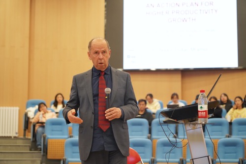 Dušan Mramor教授围绕社会人口老龄化背景下,怎样提升社会生产力的问题开展交流。他结合自己多年的研究成果和丰富的工作经历,深入浅出地讲解如何通过提高劳动者生产效率、经济效益和社会效益,继而推动社会的可持续发展。