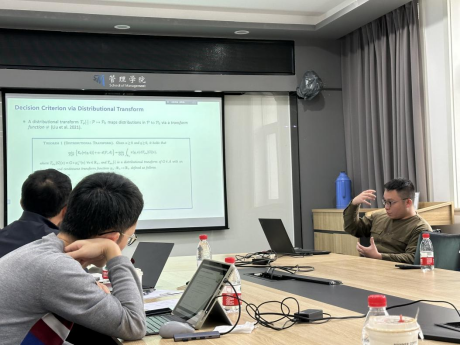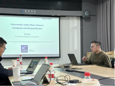 2024年11月25日,香港中文大学商学院助理教授陈植应邀进行了题为“Newsvendor under Mean-Variance Ambiguity and Misspecification”的学术报告。报告在主楼216会议室举行,来自管理工程系的多名教师、研究生参加了本次讲座,管理工程系张玉利教授主持本次交流活动。