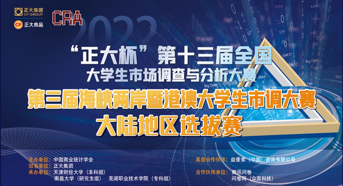 “正大杯”全国大学生市场调查与分析大赛是由教育部高等学校统计学类专业教学指导委员会与中国商业统计学会共同主办的全国性市场调查大赛。该大赛创办于 2010 年,现已成功举办12届,累计有4500多校(次)、55 万多人参赛,连续四年纳入《全国普通高校学科竞赛榜单》,是统计领域的全国性竞赛项目,也是海峡两岸暨港澳学术引领、政府支持、企业认可、高校师生积极参与的多方协同育人平台。